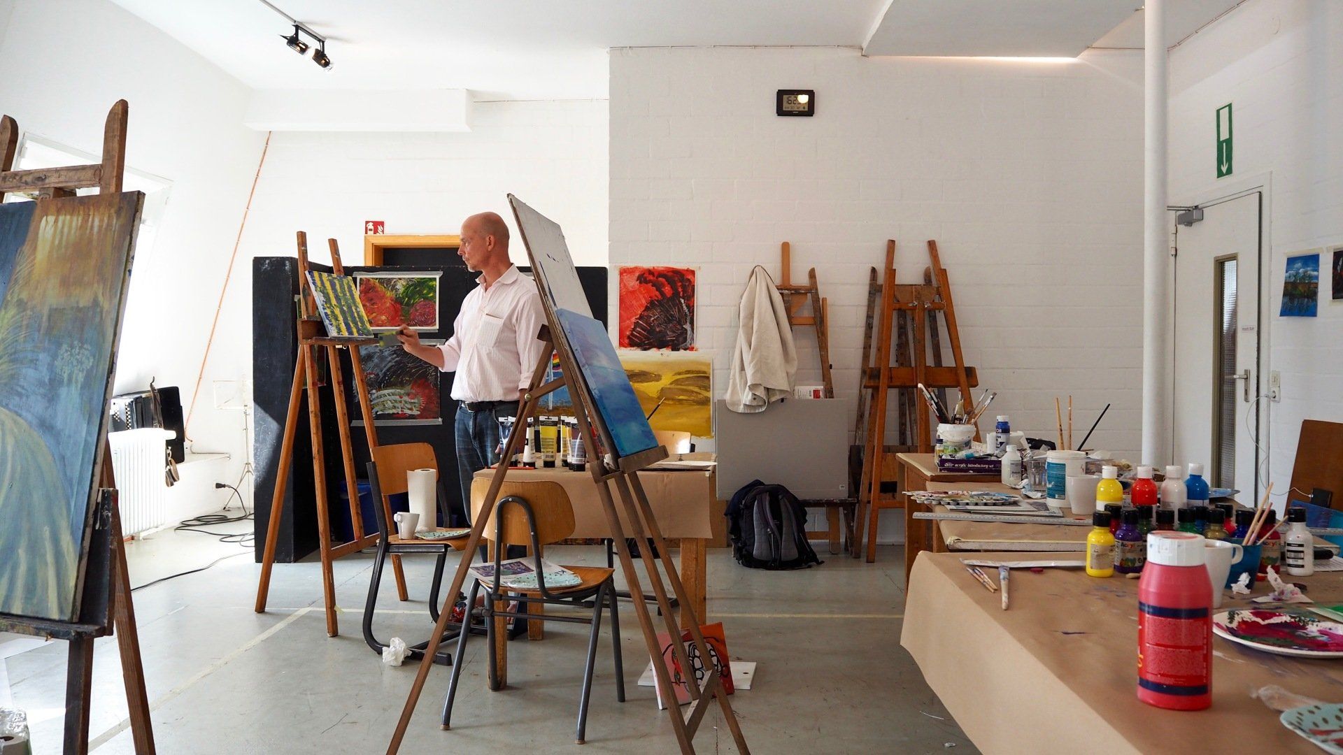 Kursdauer: ca. 3- 4 Stunden/nach Bedarf - je bis zu 6 Teilnehmer - pro Stunde: 16 EUR zzgl. Mwst - Material (Keilrahmen, Pappen, Pinsel Farben, usw.) wird gestellt und gegen Spende entgolten- Anmeldung per mail oder telefonisch